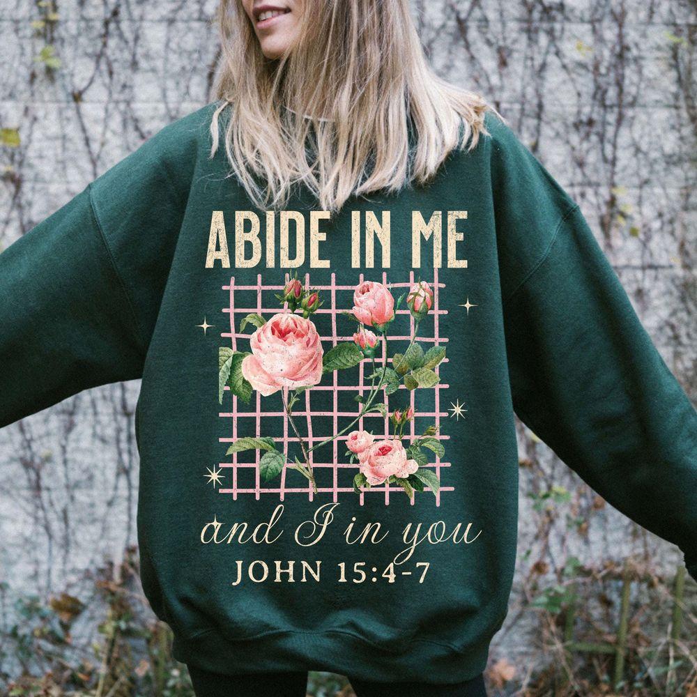 Abide In Me Retro Floral Christian Sweatshirt (Gildan’s classic)