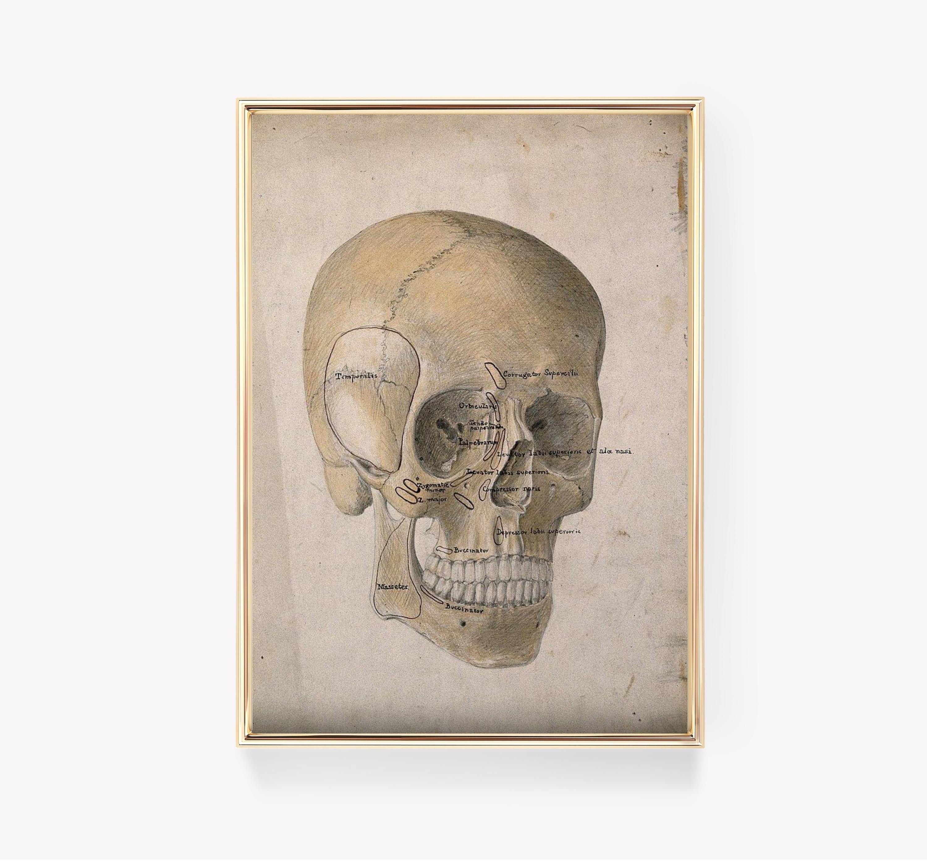 Anatomical Skull Drawing Labeled Muscles Trending Style Poster (No Frame)