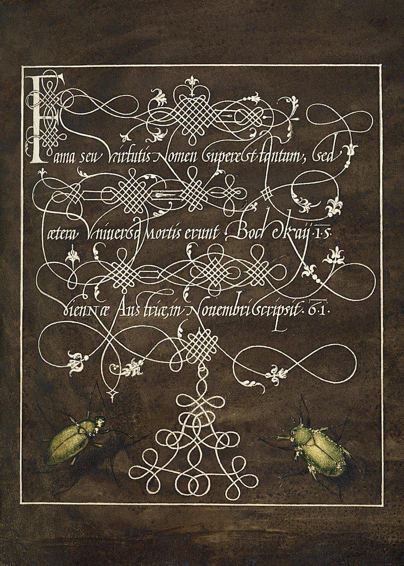 Calligraphy With Beetles Joris Hoefnagel Art Vintage Awesome Poster (No Frame)
