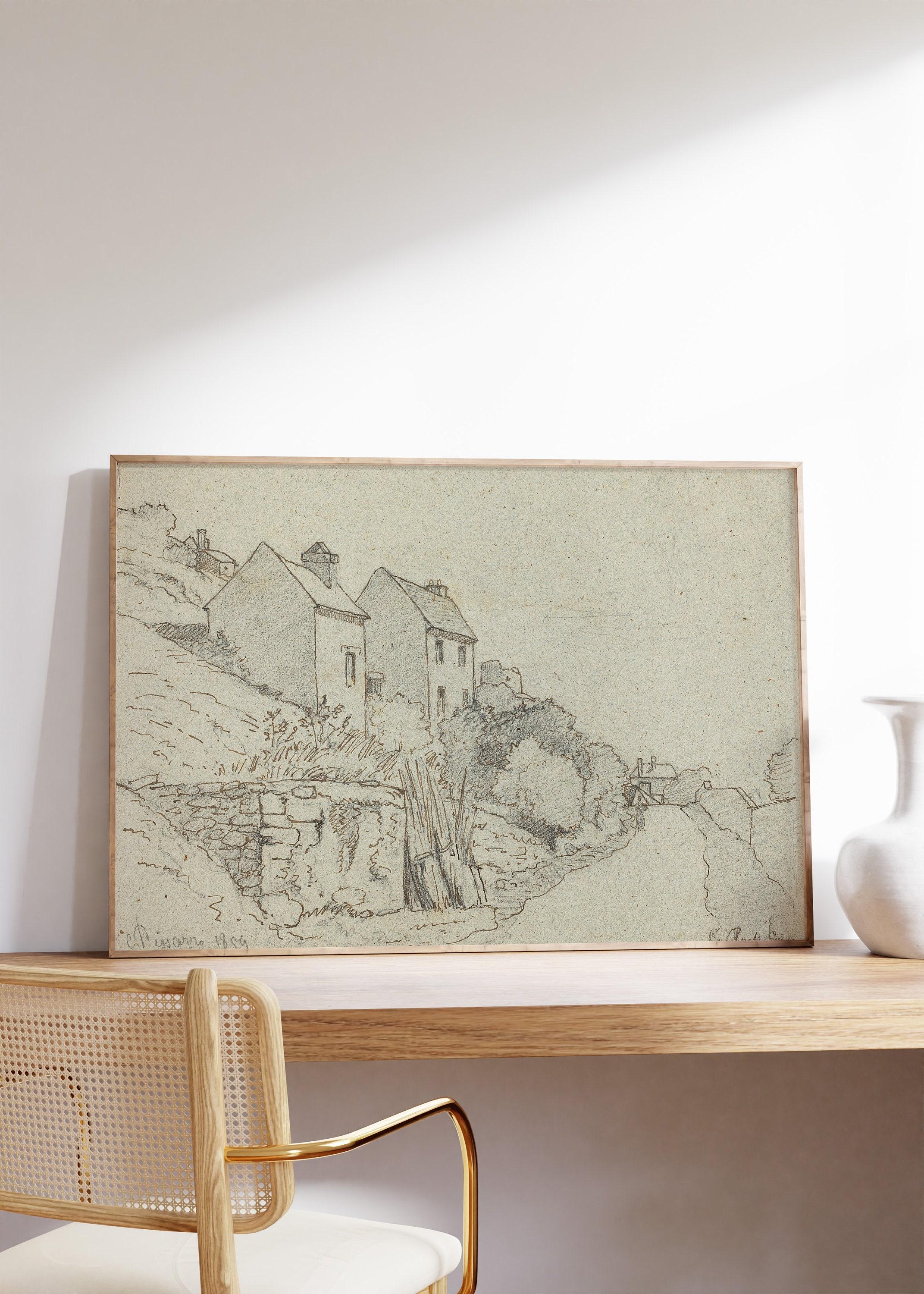 Camille Pissarro Houses By A Road 1859 Vintage Sketch Awesome Poster (No Frame) Options for you to choose: