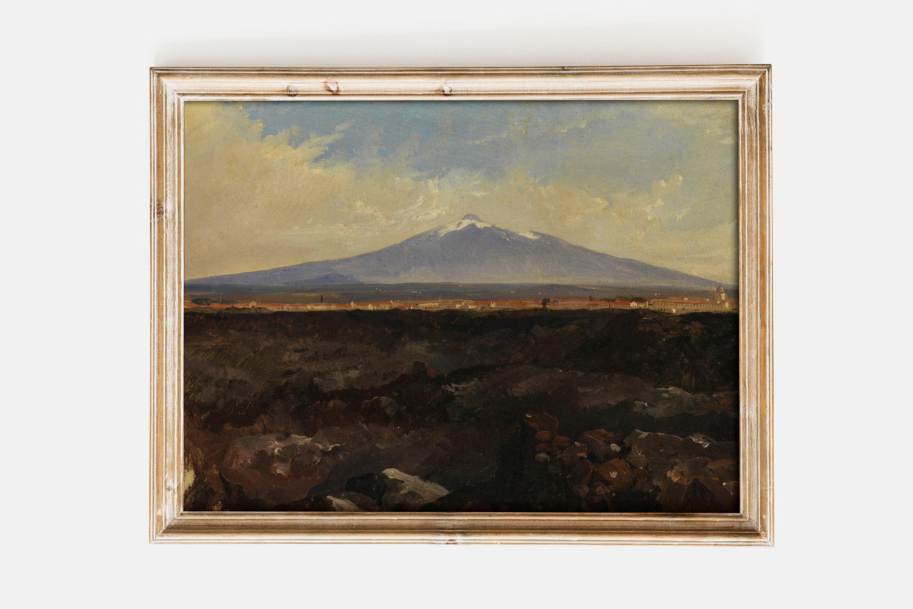 Edward Lear Catania And Mount Etna 1847 Vintage Rustic Mountain Landscape Awesome Poster (No Frame)