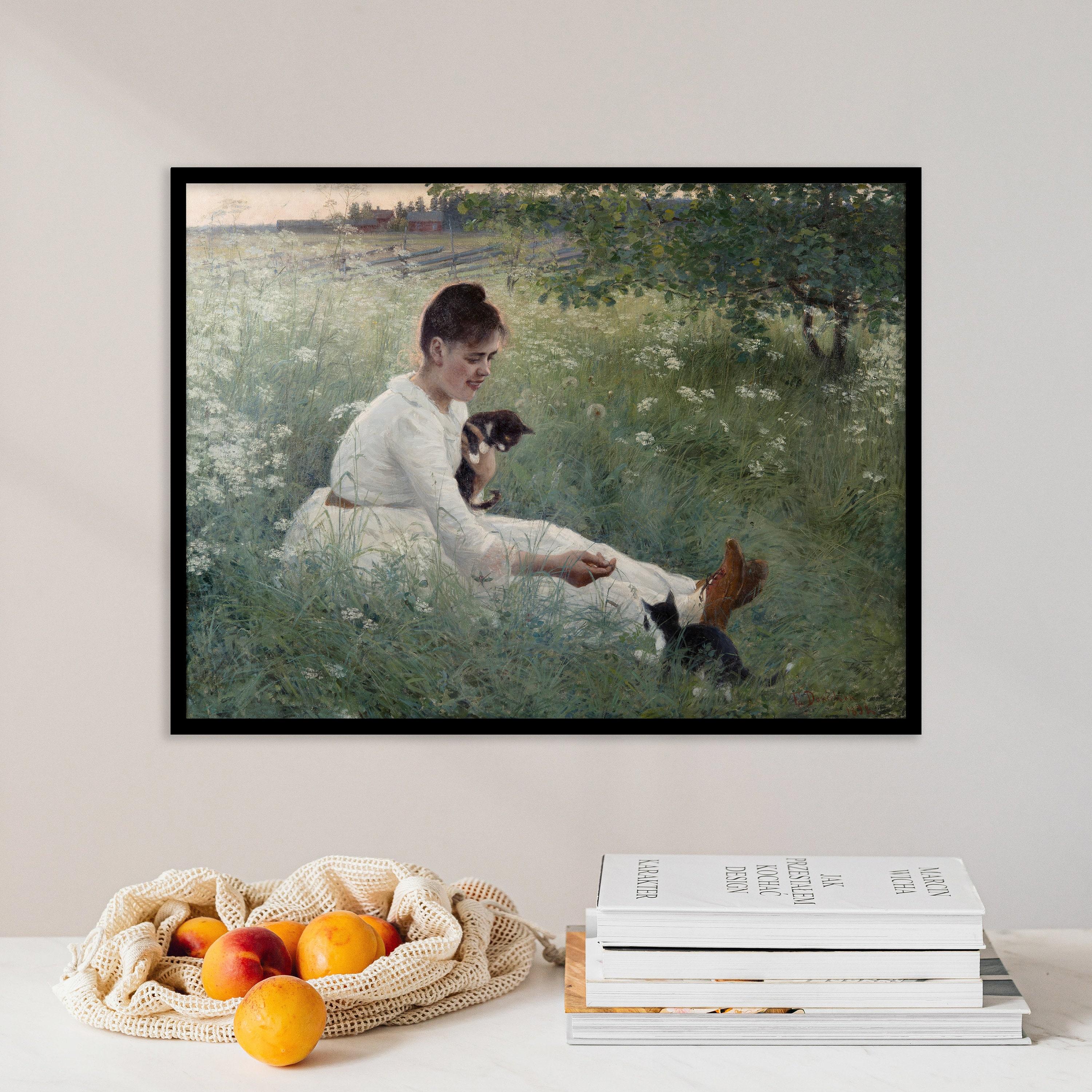 Elin Danielson Gambogi Girl With Cats In A Summer Landscape 1892 Vintage Woman Cat Limited Edition Posters (No Frame) Options for you to choose: