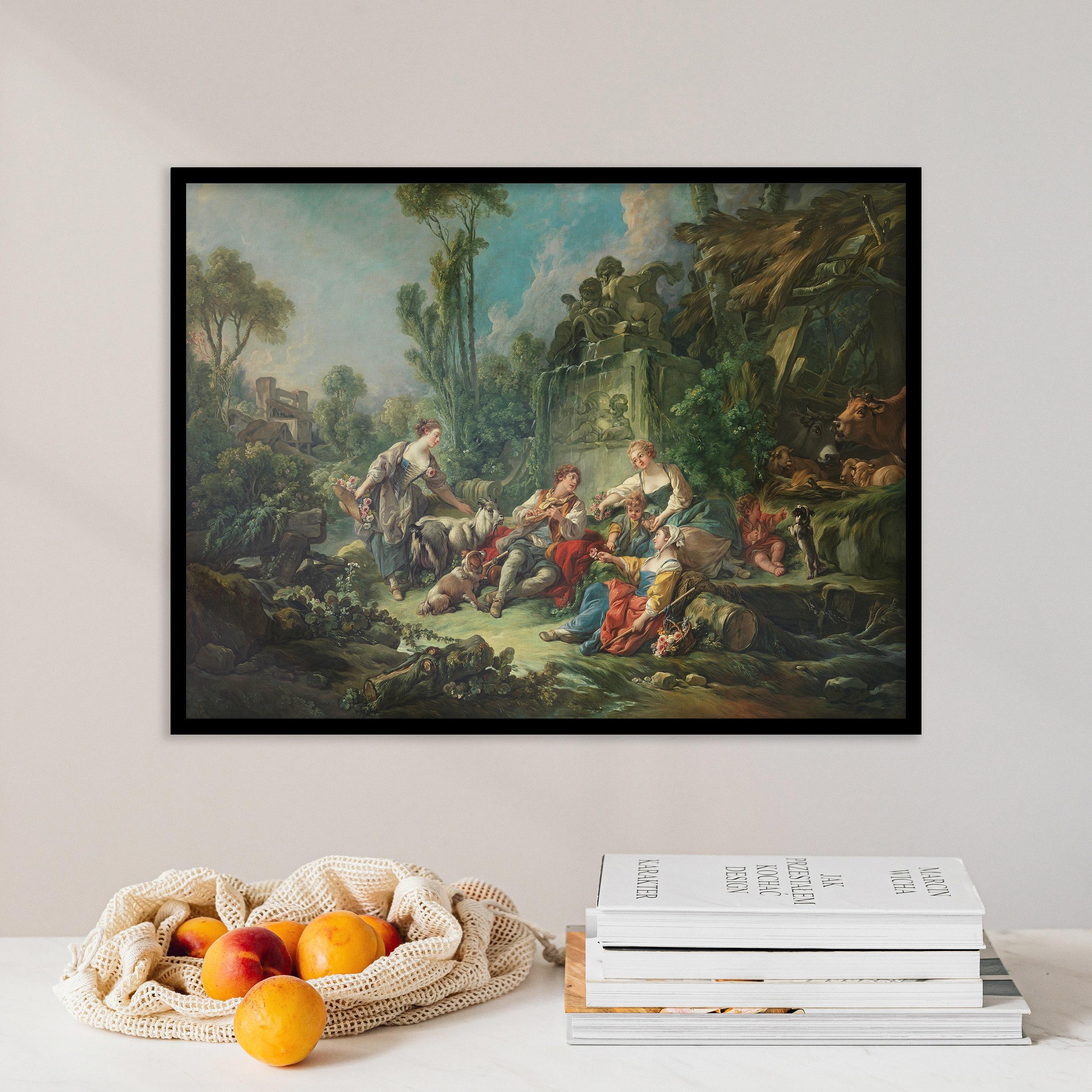 Printed on an premium luster photo paper, Franois Boucher Shepherds Idyll 1768 Landscape posters are printed in San Francisco, CA. They are premium luster photo paper for best quality, with a high contrast black and white. The poster base has been coated with an edible resin coating that allows it to be safely stored away from direct light. High-quality resin-coated photo base paper medium A 260 gsm and a 10 mil thickness of paper. Last up to 200 years color and 400 years black-and-white