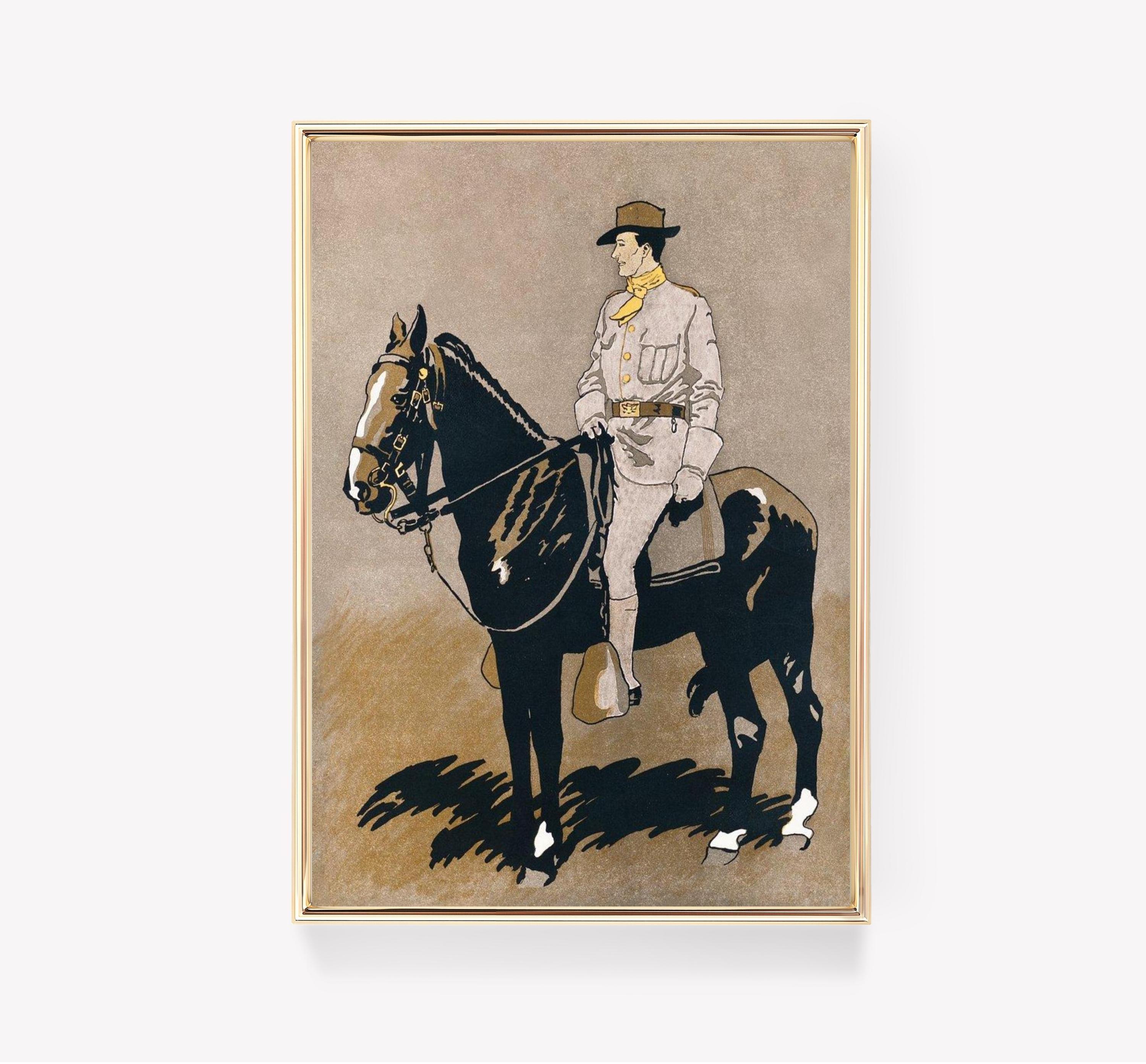 Printed on an premium luster photo paper, General Boulanger On Horseback Vintage posters are printed in San Francisco, CA. They are premium luster photo paper for best quality, with a high contrast black and white. The poster base has been coated with an edible resin coating that allows it to be safely stored away from direct light. High-quality resin-coated photo base paper medium A 260 gsm and a 10 mil thickness of paper. Last up to 200 years color and 400 years black-and-white