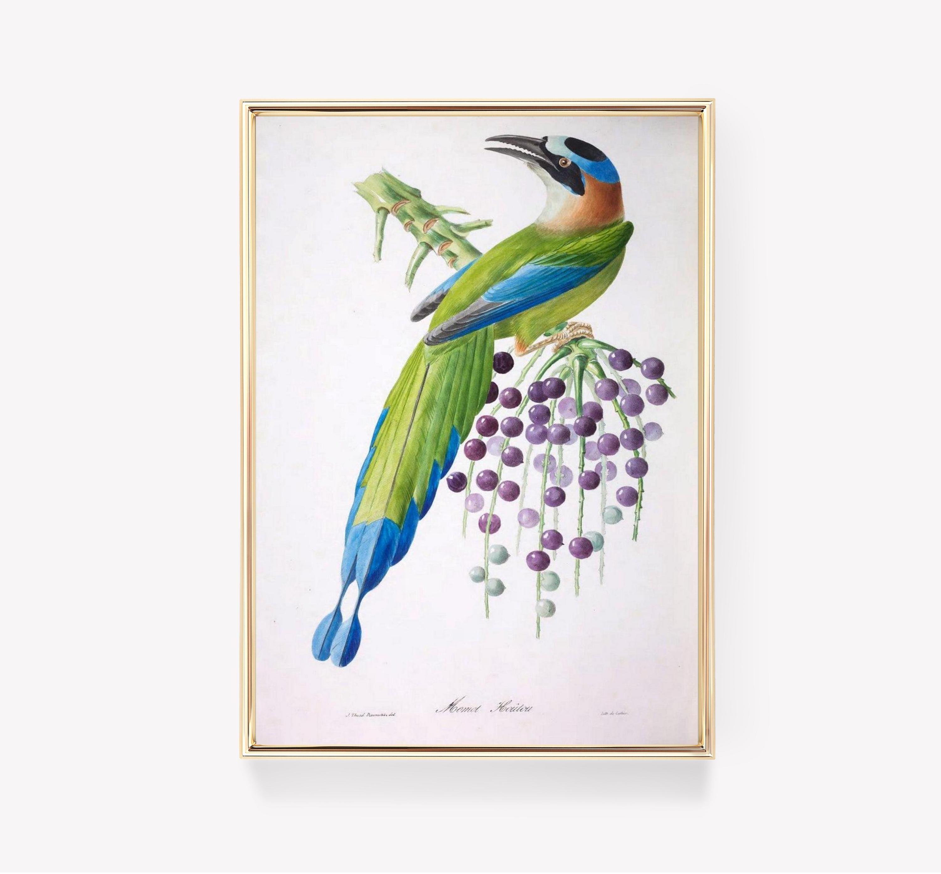 Printed on an premium luster photo paper, Iridescent Bird Art Purple Berries posters are printed in San Francisco, CA. They are premium luster photo paper for best quality, with a high contrast black and white. The poster base has been coated with an edible resin coating that allows it to be safely stored away from direct light. High-quality resin-coated photo base paper medium A 260 gsm and a 10 mil thickness of paper. Last up to 200 years color and 400 years black-and-white