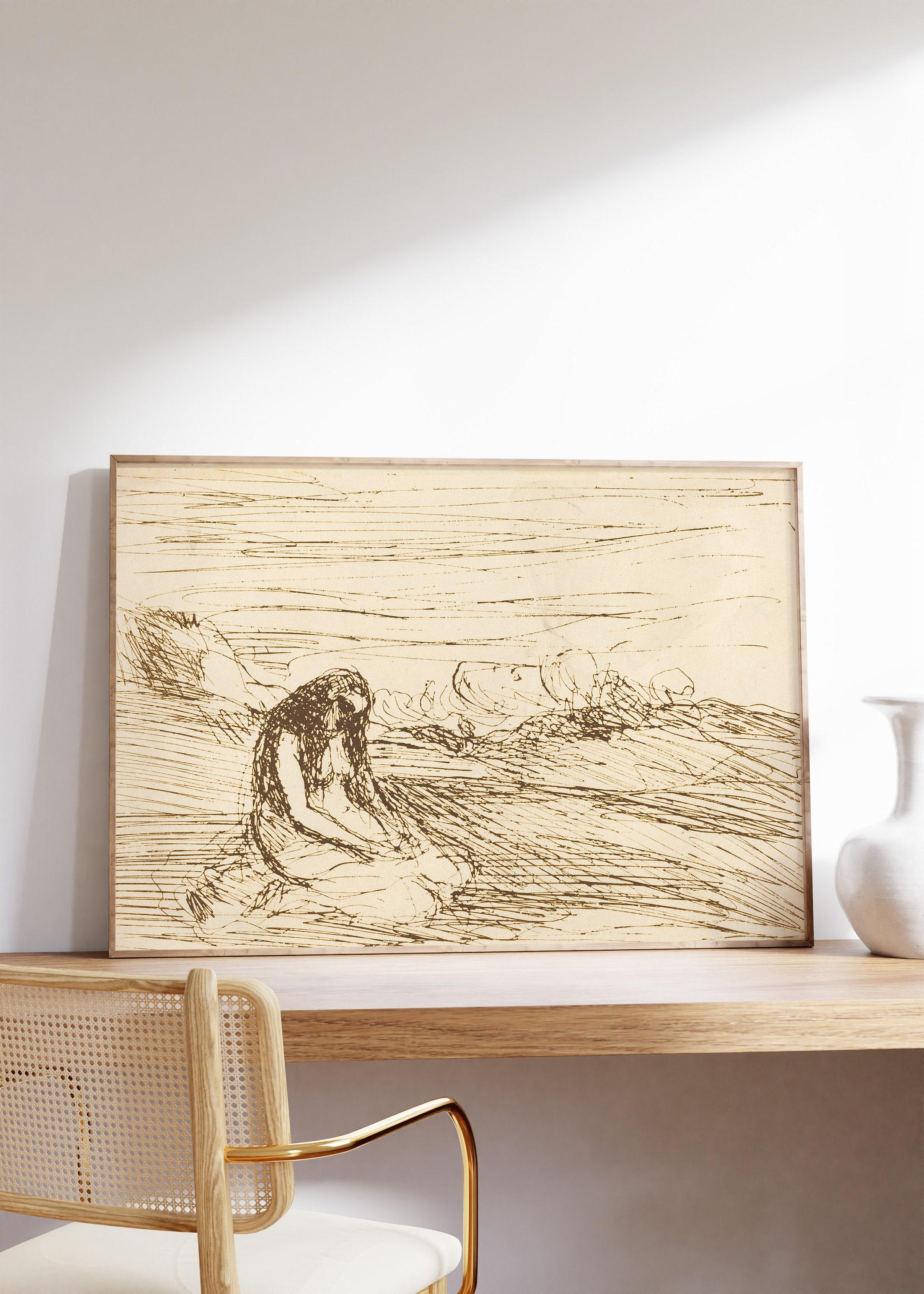 Jean Baptiste Camille Corot Mary Magdalene In Meditation 1858 Vintage Sketch Line Art Limited Edition Posters (No Frame) Options for you to choose: