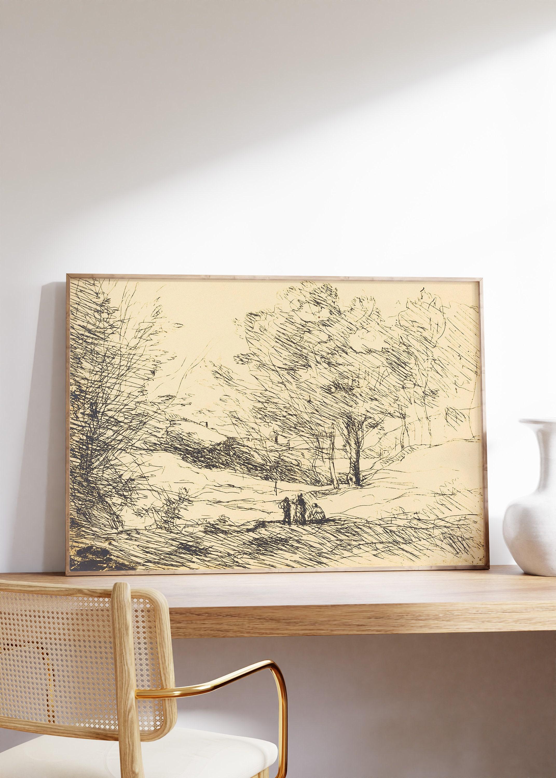 Jean Baptiste Camille Corot Souvenir Of Lake Maggiore 1871 Vintage Sketch Abstract Line Art Limited Edition Posters (No Frame) Options for you to choose: