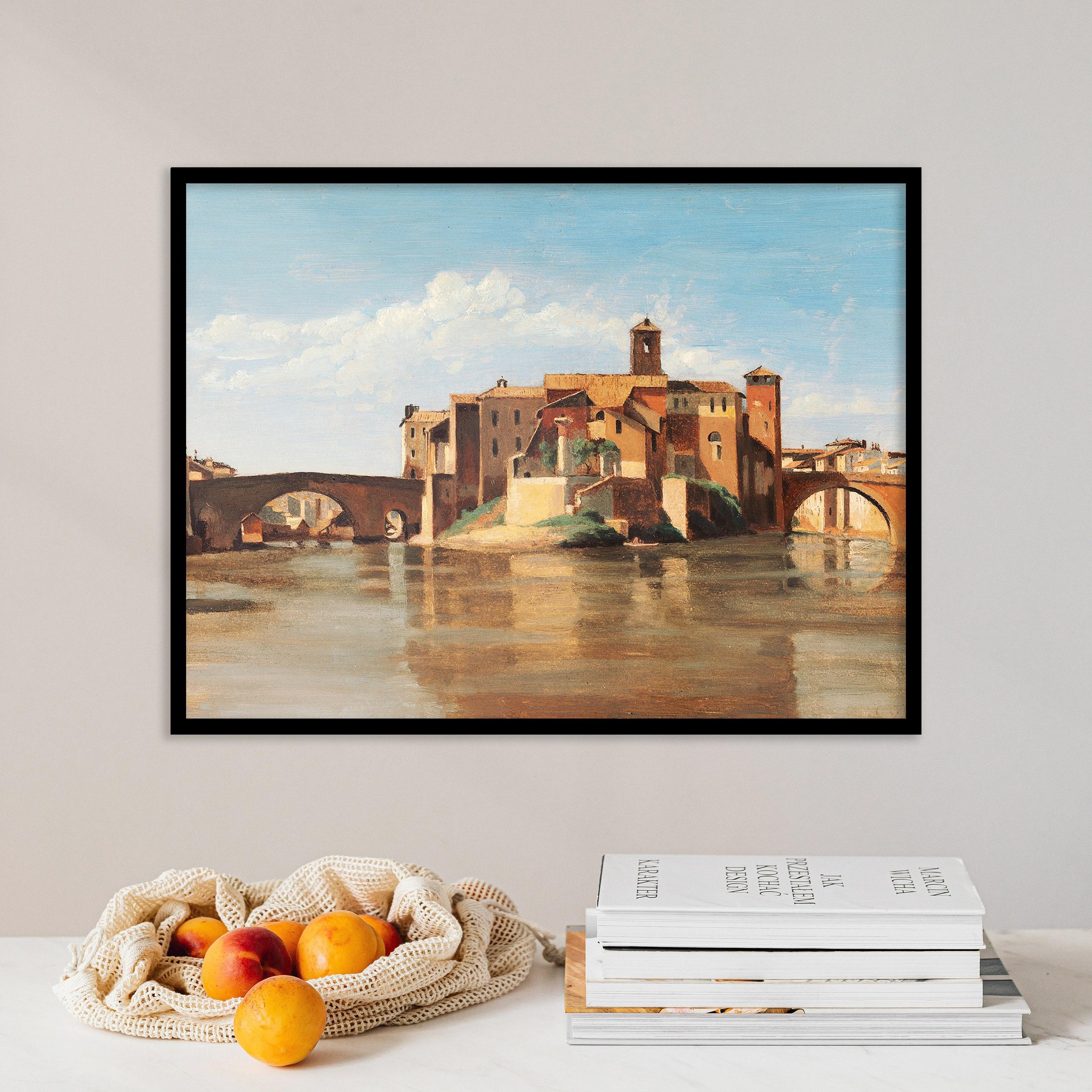 Jean Baptiste Camille Corot The Island And Bridge Of San Bartolomeo Rome 1828 Awesome Poster (No Frame) Options for you to choose: