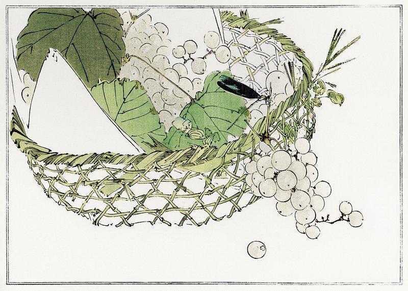 Katsushika Hokusai Basket Of Grapes Vintage Art Japanese Trending Style Poster (No Frame) Options for you to choose: