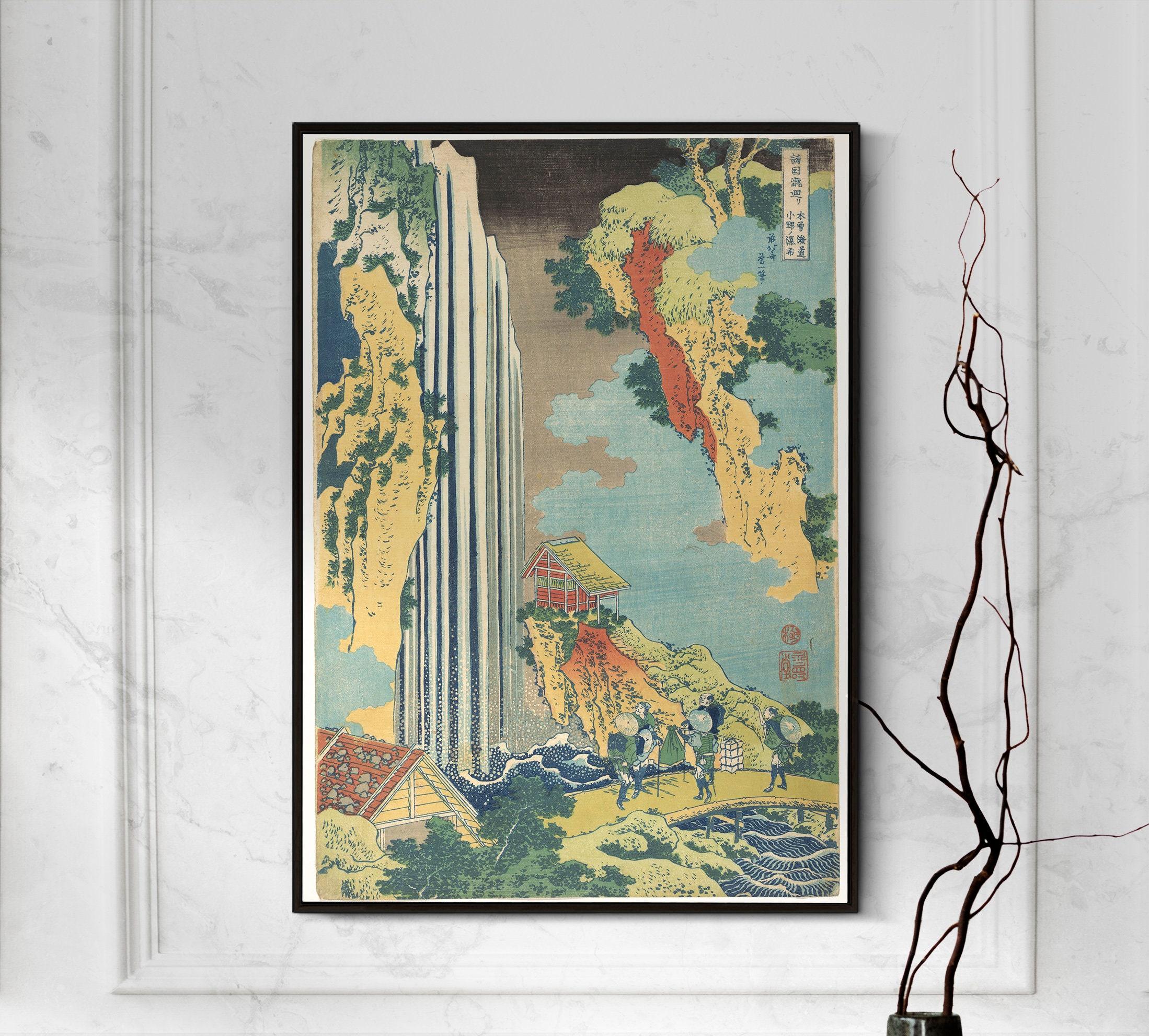 Printed on an premium luster photo paper, Katsushika Hokusai Ono Falls On The Kisokaido From A Tour Of Waterfalls 1833 posters are printed in San Francisco, CA. They are premium luster photo paper for best quality, with a high contrast black and white. The poster base has been coated with an edible resin coating that allows it to be safely stored away from direct light. High-quality resin-coated photo base paper medium A 260 gsm and a 10 mil thickness of paper. Last up to 200 years color and 400 years black-and-white