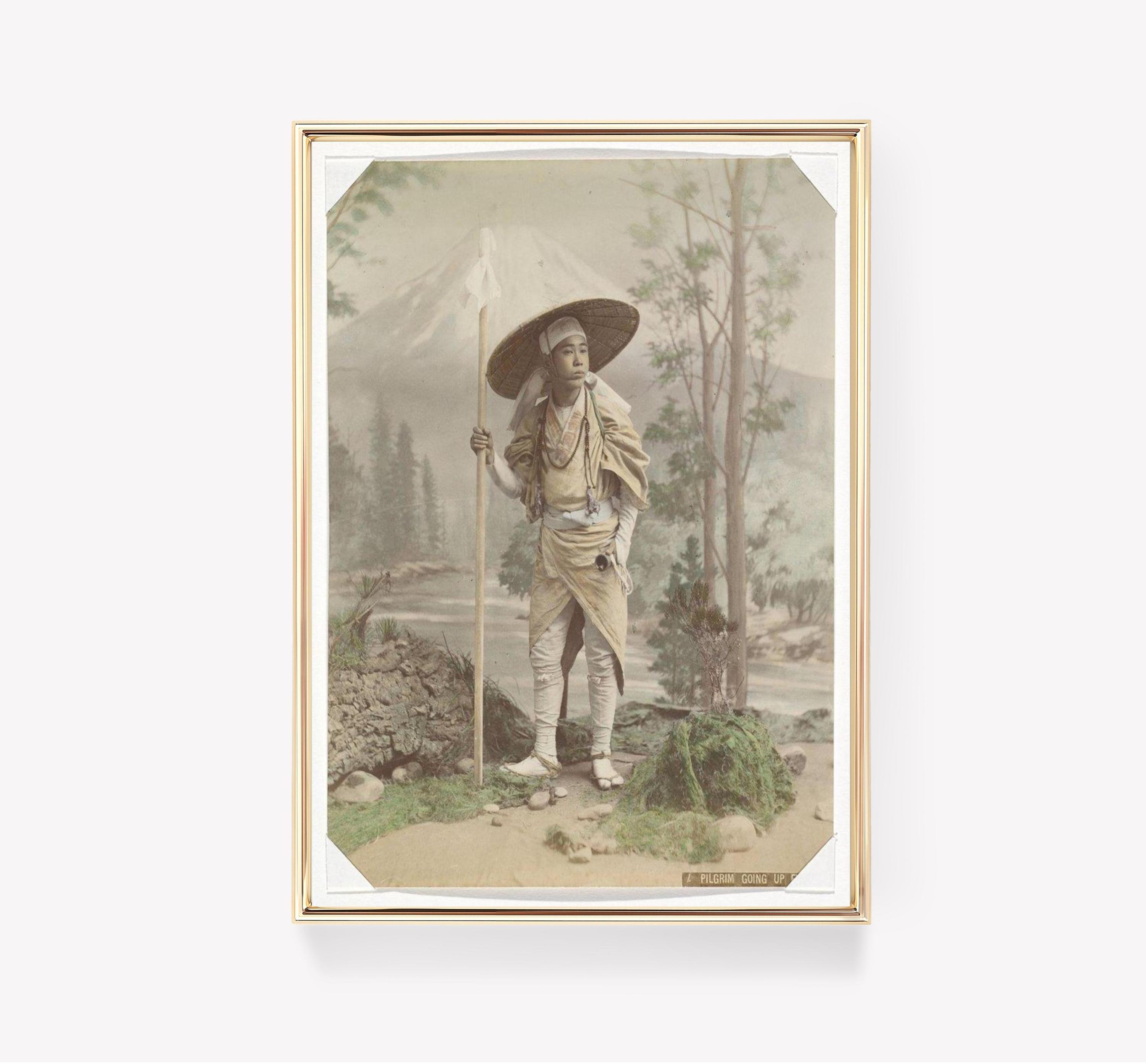 Printed on an premium luster photo paper, Kusakabe Kimbei Pilgrim On Fuji Vintage Photograph Antique Japan posters are printed in San Francisco, CA. They are premium luster photo paper for best quality, with a high contrast black and white. The poster base has been coated with an edible resin coating that allows it to be safely stored away from direct light. High-quality resin-coated photo base paper medium A 260 gsm and a 10 mil thickness of paper. Last up to 200 years color and 400 years black-and-white
