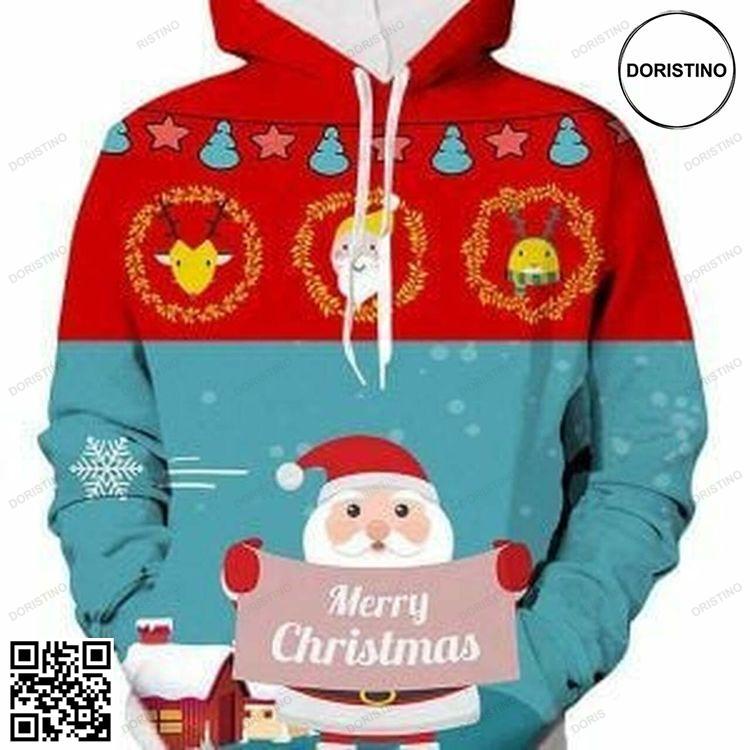 Merry Christmas Santa Clause 3d All Over Print Hoodie made from a blend of 90% polyester and 10% spandex.