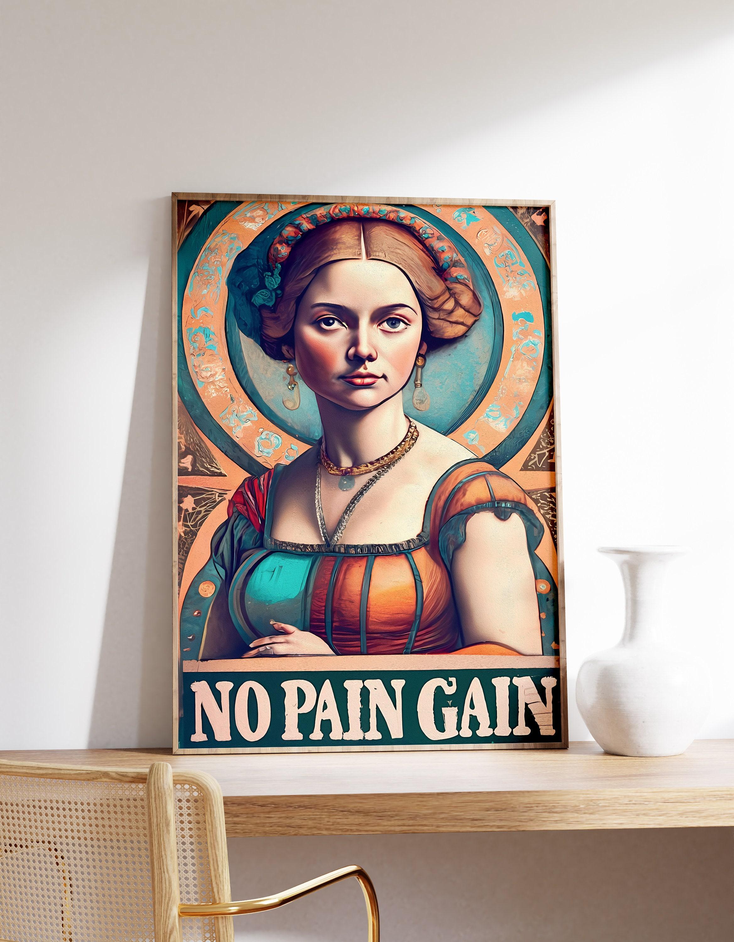 No Pain Gain Victorian Lady Altered Portrait Art Vintage Art Antique Lady Trending Style Poster (No Frame) Options for you to choose: