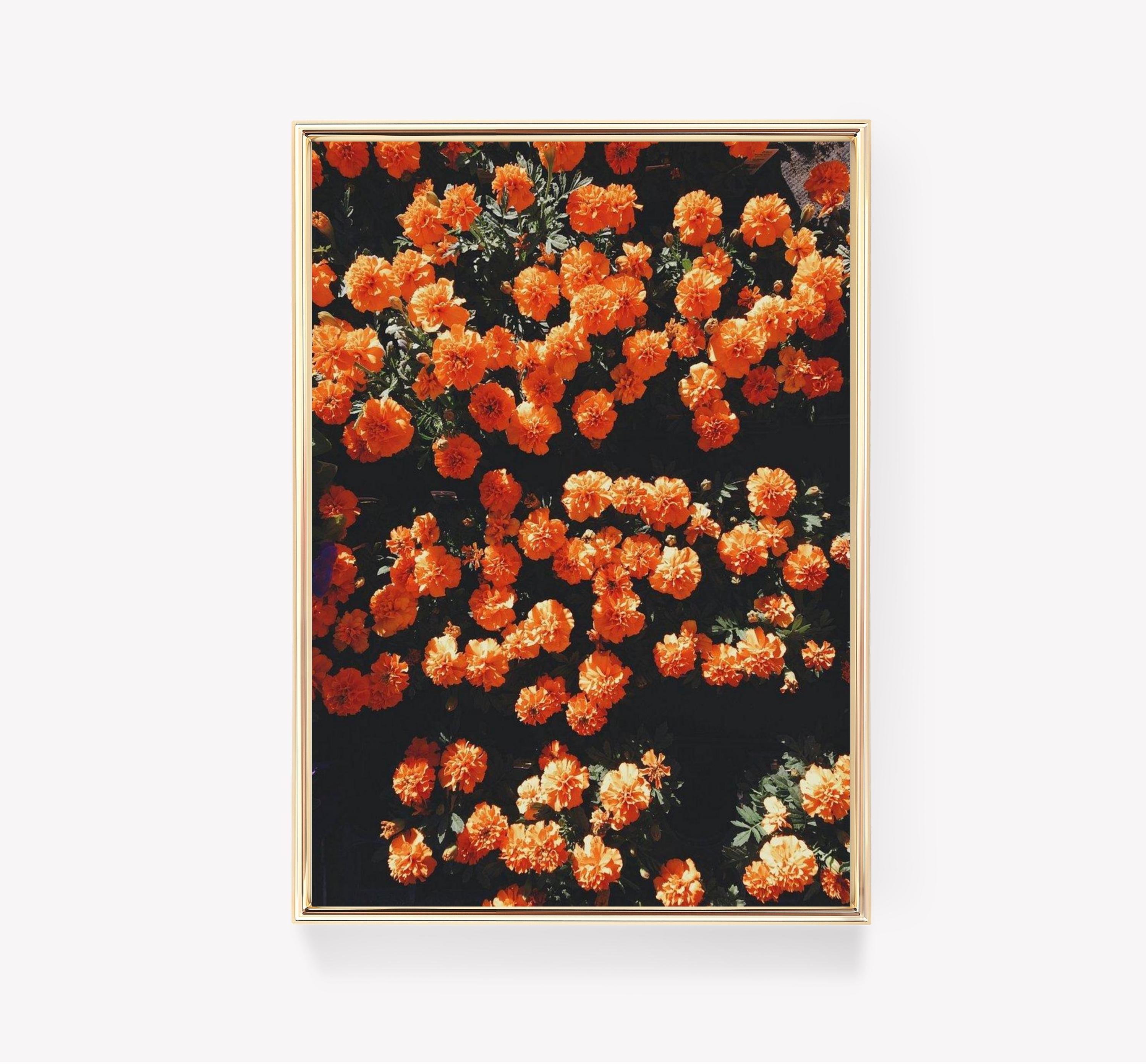Printed on an premium luster photo paper, Orange Marigold Flowers Vintage posters are printed in San Francisco, CA. They are premium luster photo paper for best quality, with a high contrast black and white. The poster base has been coated with an edible resin coating that allows it to be safely stored away from direct light. High-quality resin-coated photo base paper medium A 260 gsm and a 10 mil thickness of paper. Last up to 200 years color and 400 years black-and-white