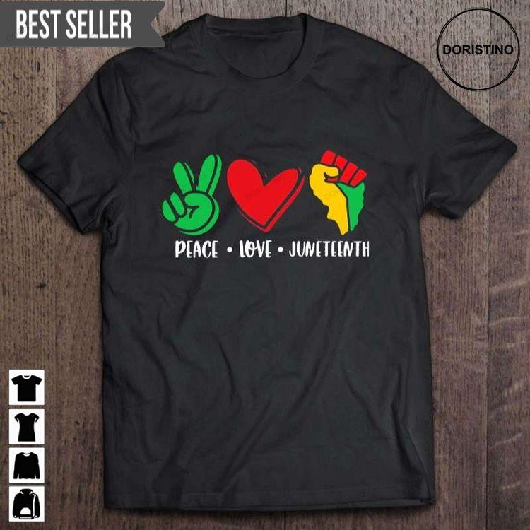 Peace Love Juneteenth Black Lives Matter Peace Sign Heart Raised Fist Unisex Awesome Shirt
