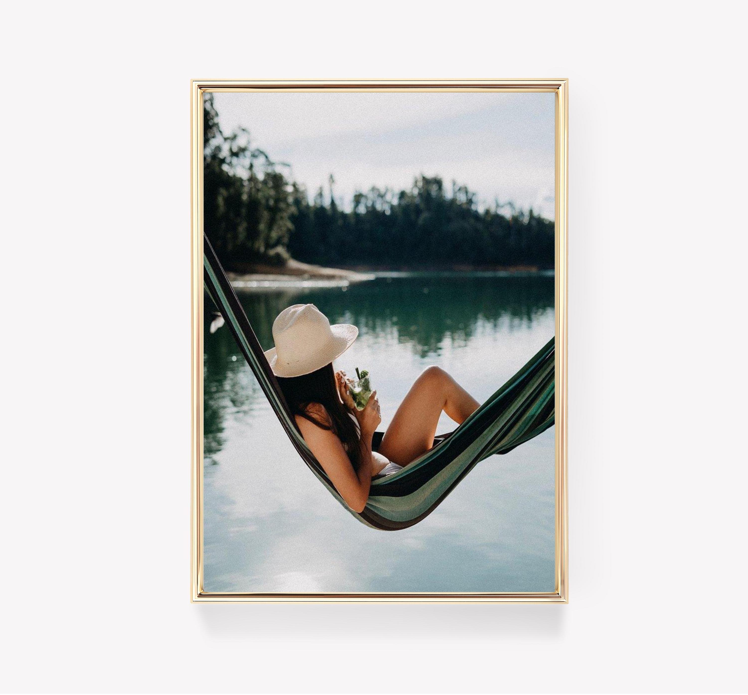 Person In Hammock Relax By Lake Scenic Serenity Awesome Poster (No Frame)