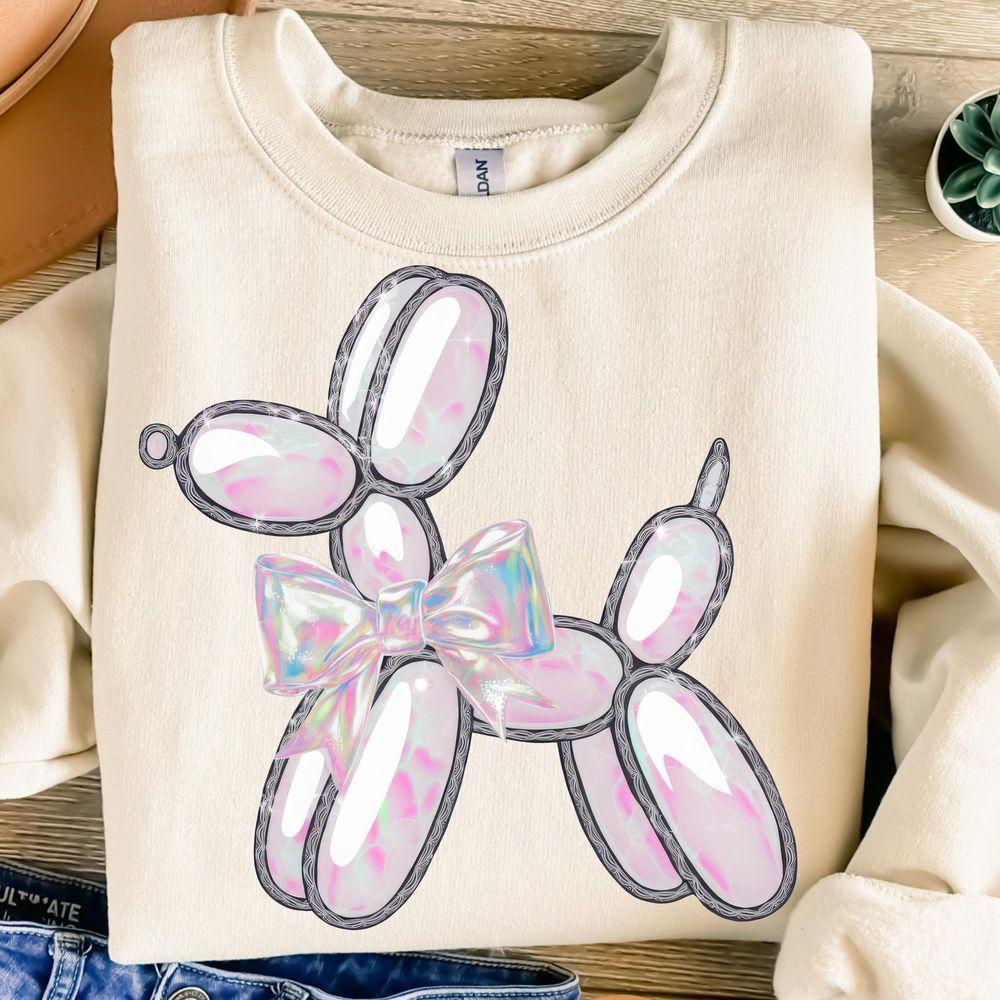 Pink Iridescent Balloon Dogtion Design Coquette Bow Dog Party Balloon Sweatshirt (Gildan’s classic)