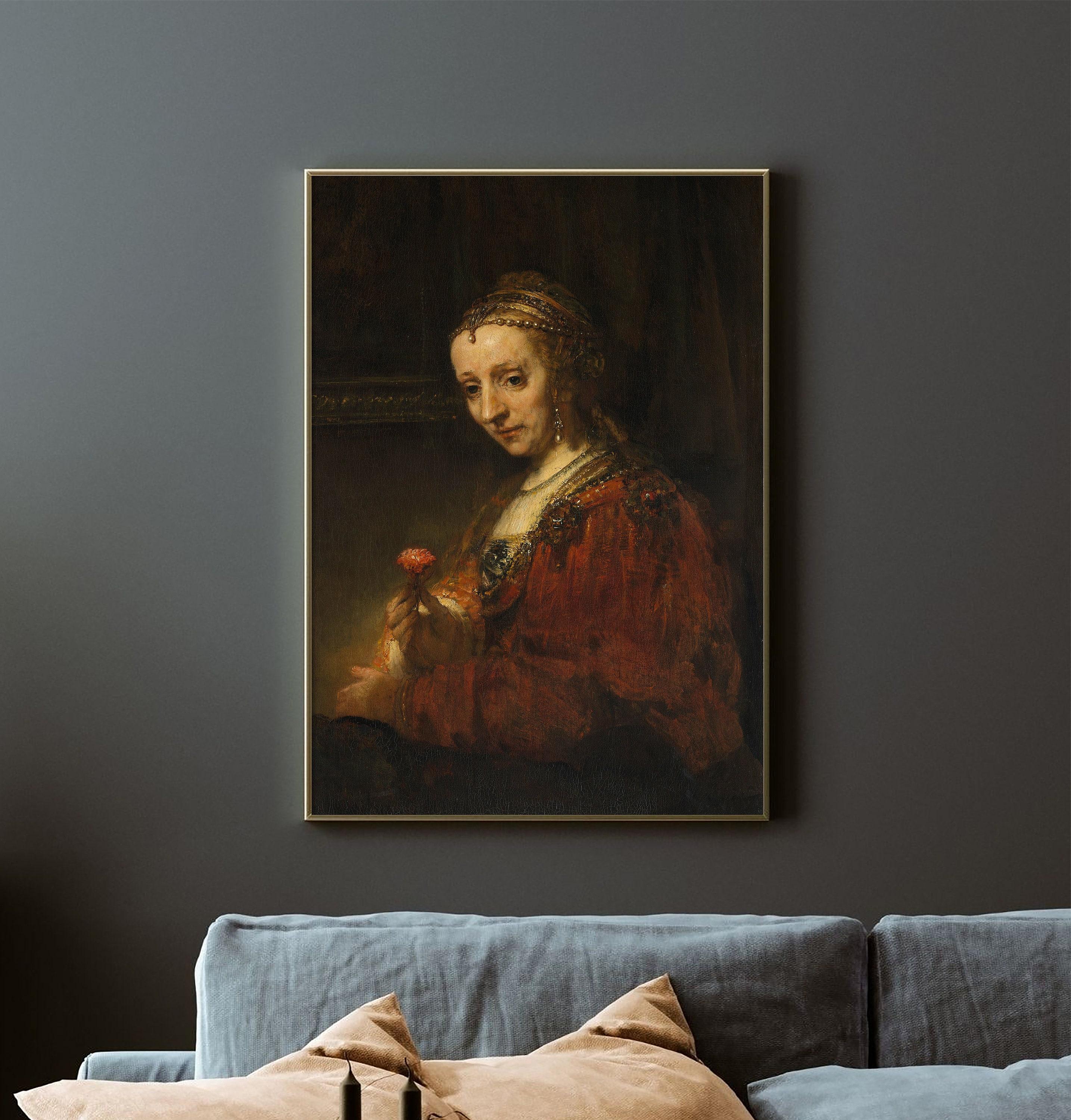 Love Rembrandt Van Rijn Woman With A Pink 1660 Vintage Trending Style Poster (No Frame), order quickly before sold out.