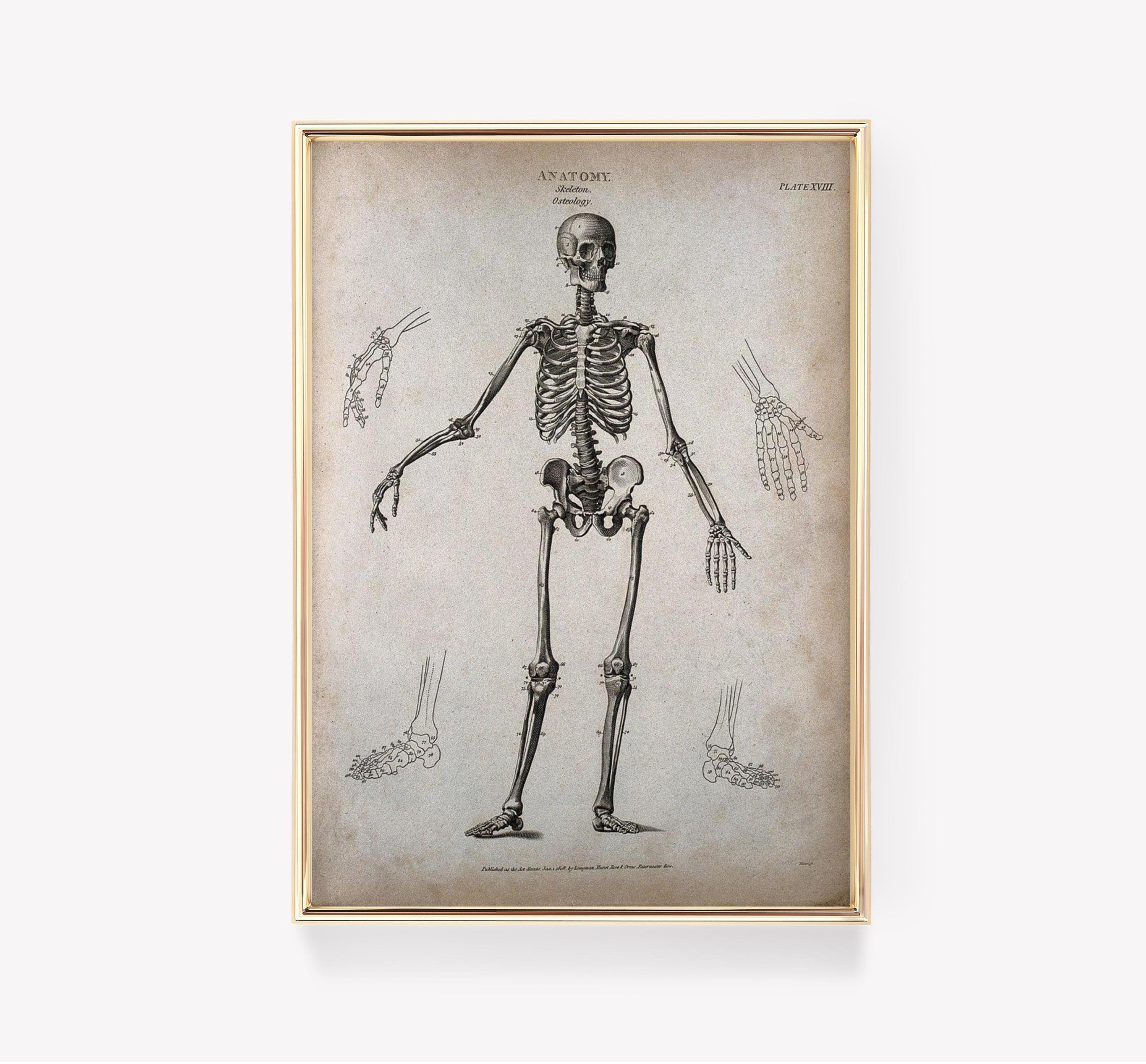 Skeleton Anatomy Human Skeleton Anatomy Art Skeleton Diagram Bone Structure Vintage Limited Edition Posters (No Frame) Options for you to choose: