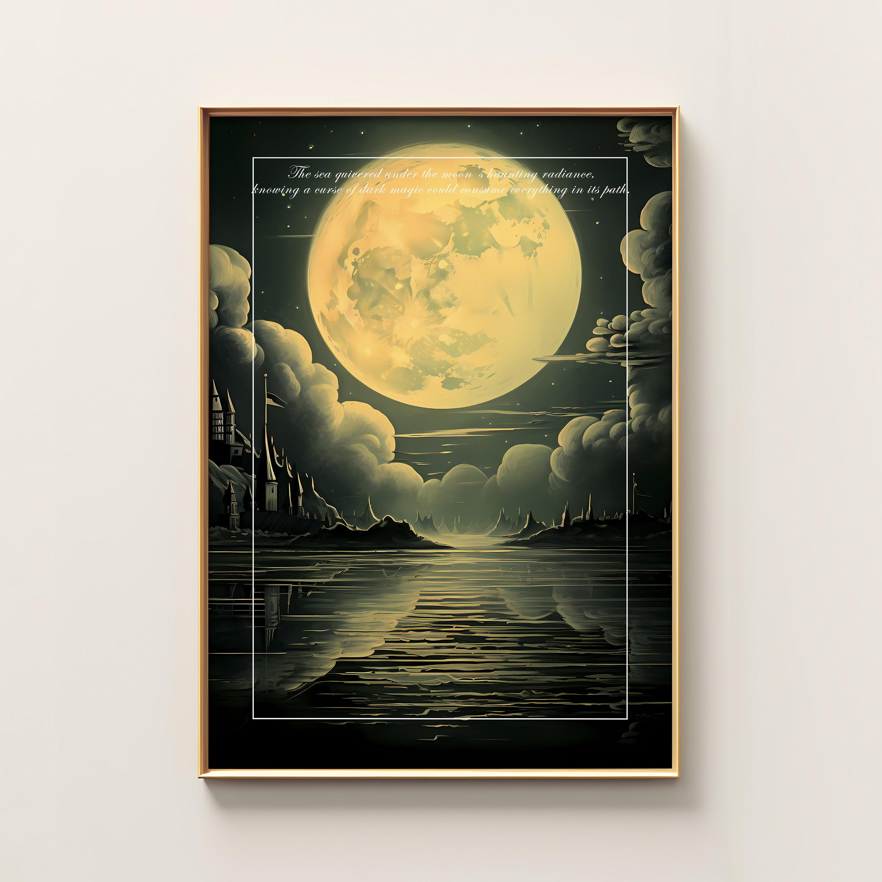 The Kiss In The Moon Dark Academia Vintage Moon Illustration On Old Retro Book Astronomy 2 Trending Style Poster (No Frame)