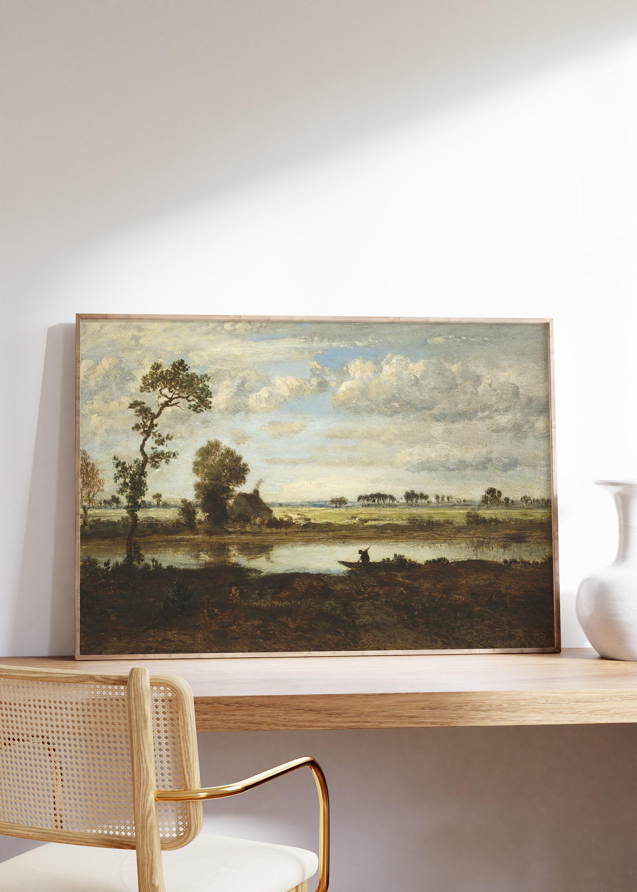 Thodore Rousseau Landscape With Boatman 1860 Vintage Awesome Poster (No Frame) Options for you to choose: