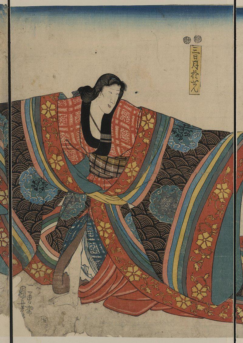Printed on an premium luster photo paper, Utagawa Kunisada posters are printed in San Francisco, CA. They are premium luster photo paper for best quality, with a high contrast black and white. The poster base has been coated with an edible resin coating that allows it to be safely stored away from direct light. High-quality resin-coated photo base paper medium A 260 gsm and a 10 mil thickness of paper. Last up to 200 years color and 400 years black-and-white