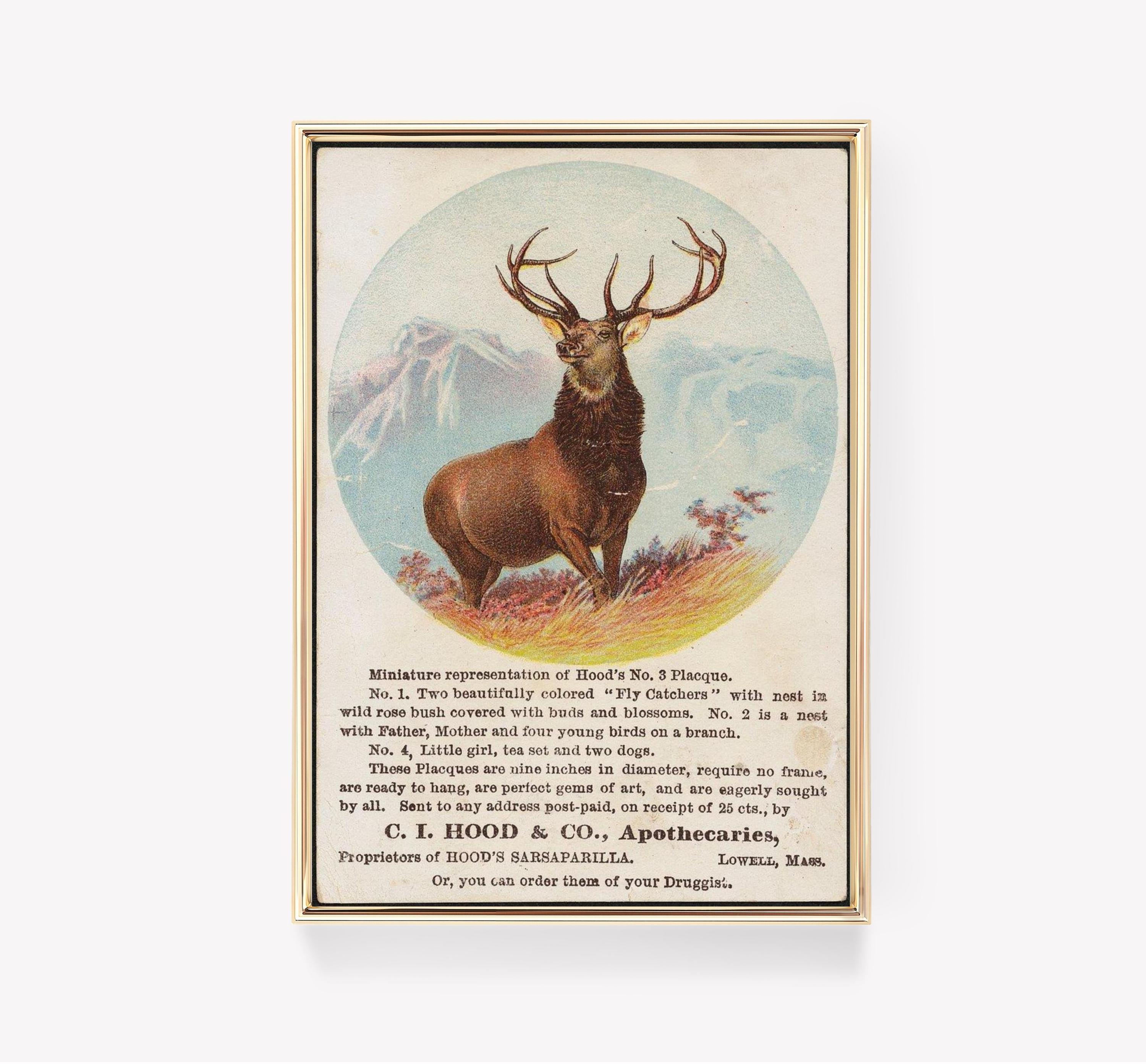Vintage Hoods Sarsaparilla Deer Advert Trending Style Poster (No Frame) Options for you to choose: