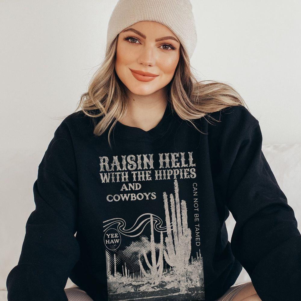 Western Raisin Hell With The Hippies 4 Sweatshirt (Gildan’s classic)