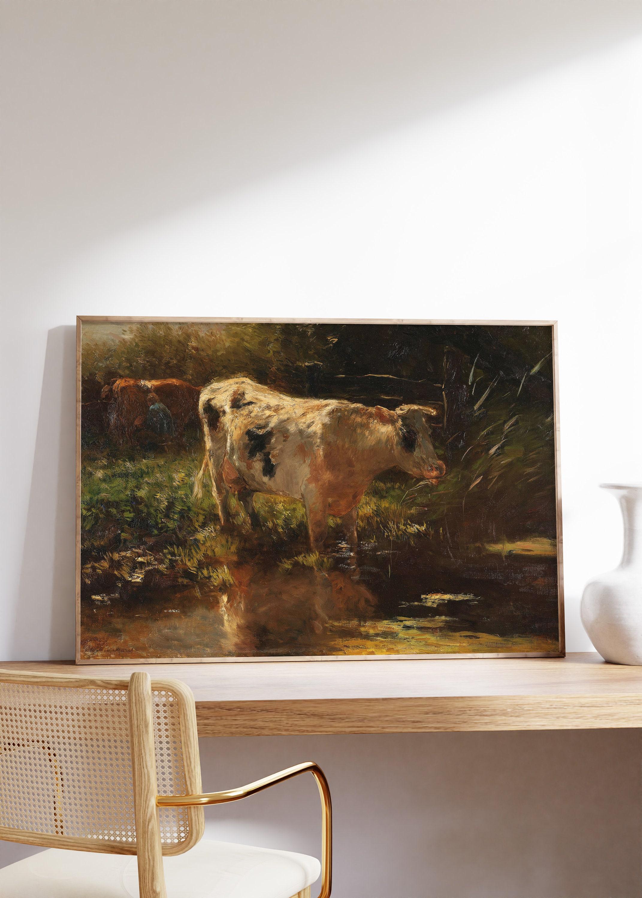 Willem Maris Cow At The Ditch 1885 Cow Portrait Vintage Awesome Poster (No Frame) Options for you to choose: