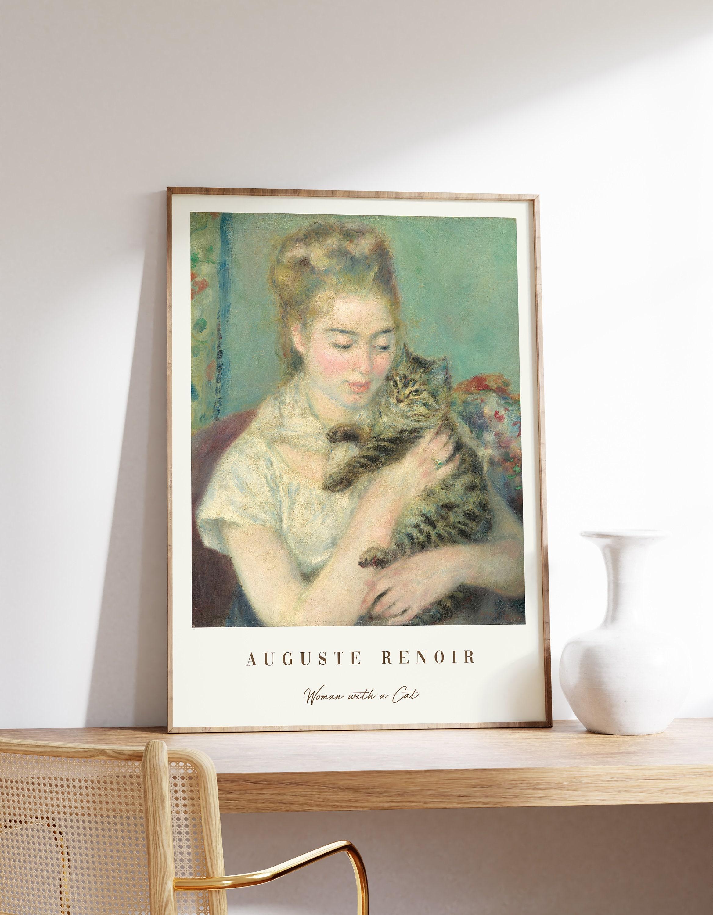 Woman With A Cat By Auguste Renoir Victorian Female Cat Muted Famous Cottagecore Antique Retro Awesome Poster (No Frame) Options for you to choose: